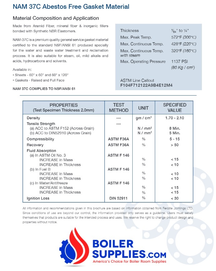 - A general purpose gasket material suitable for service in hot water, mild acids, alkalines, and inert gases.